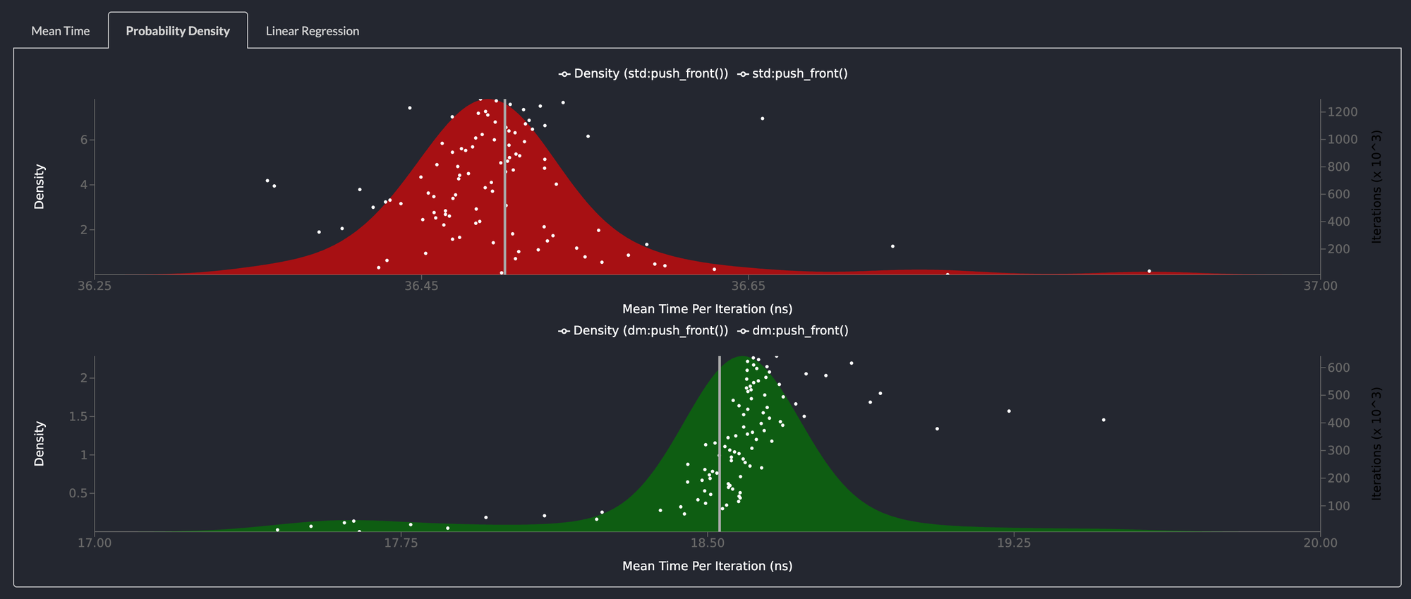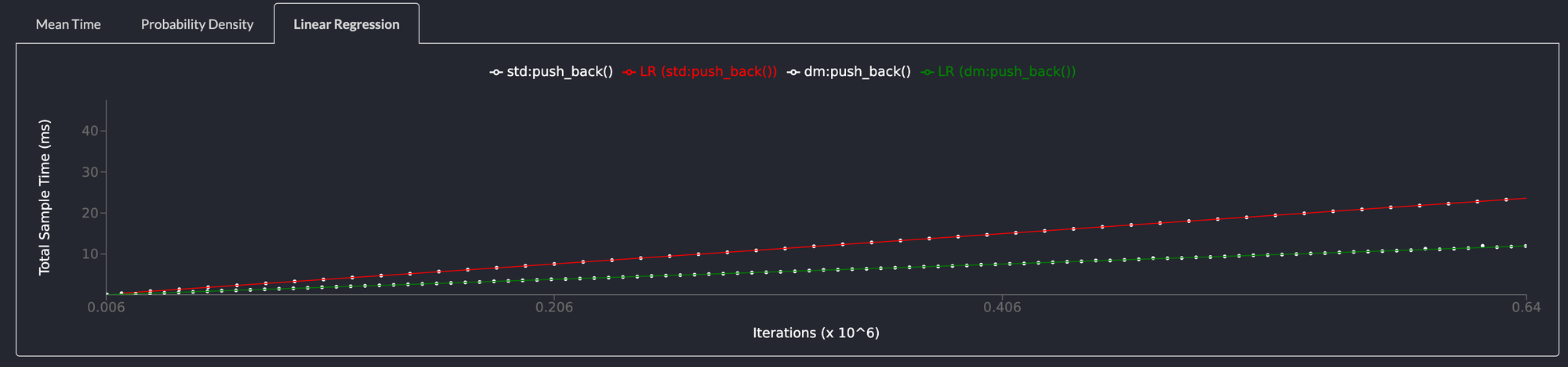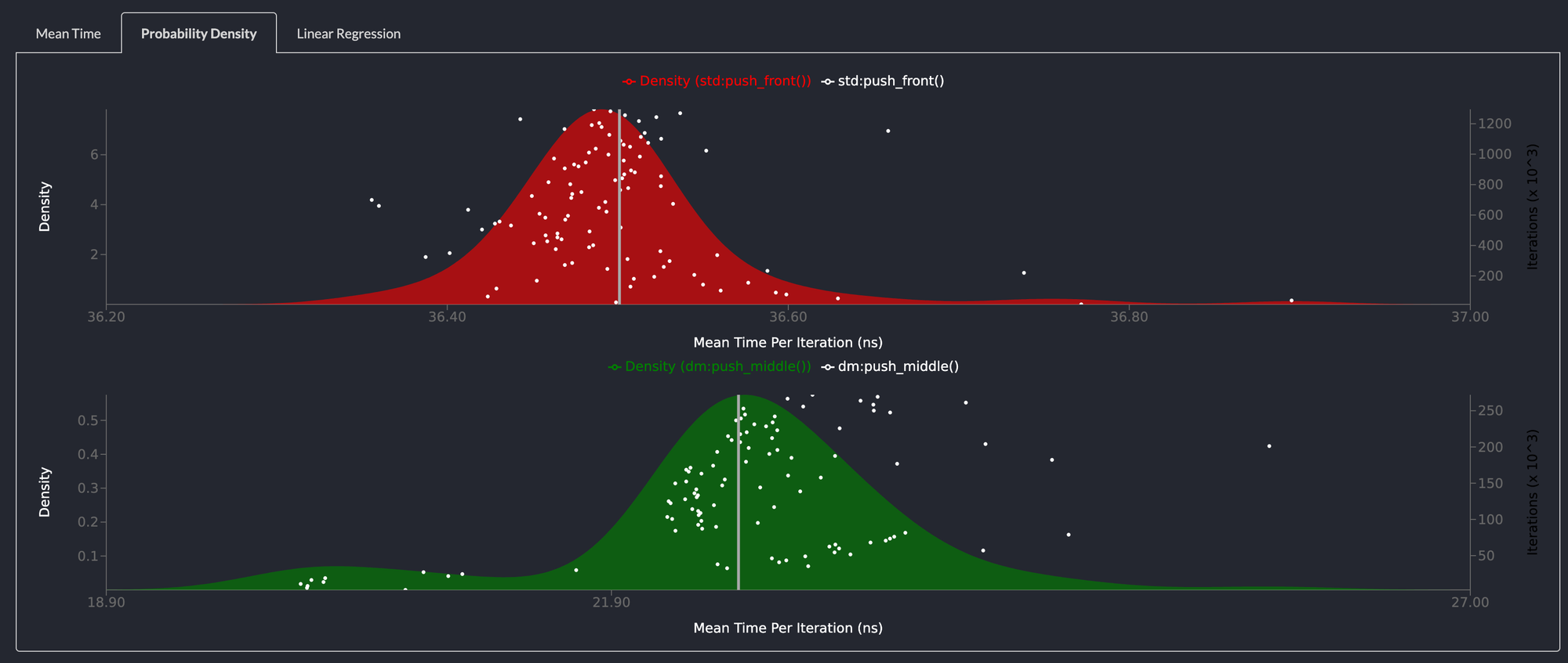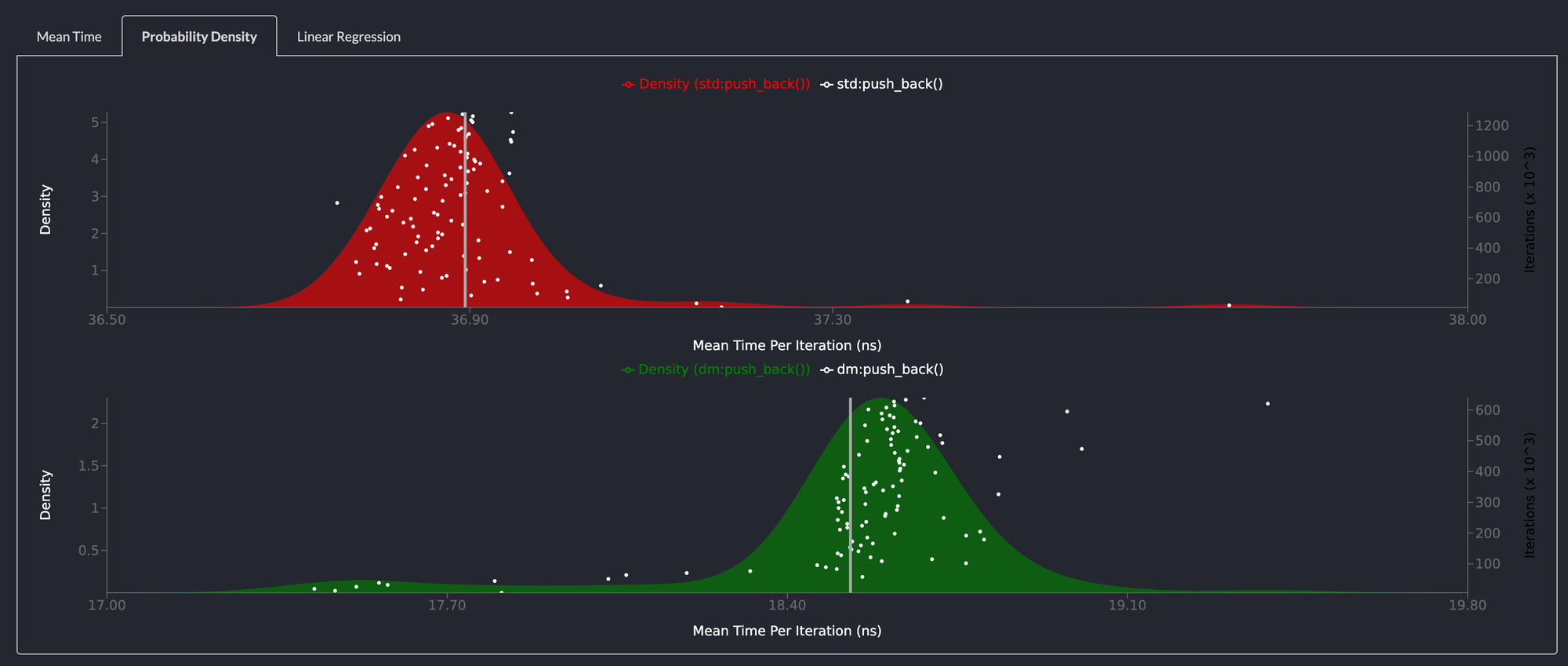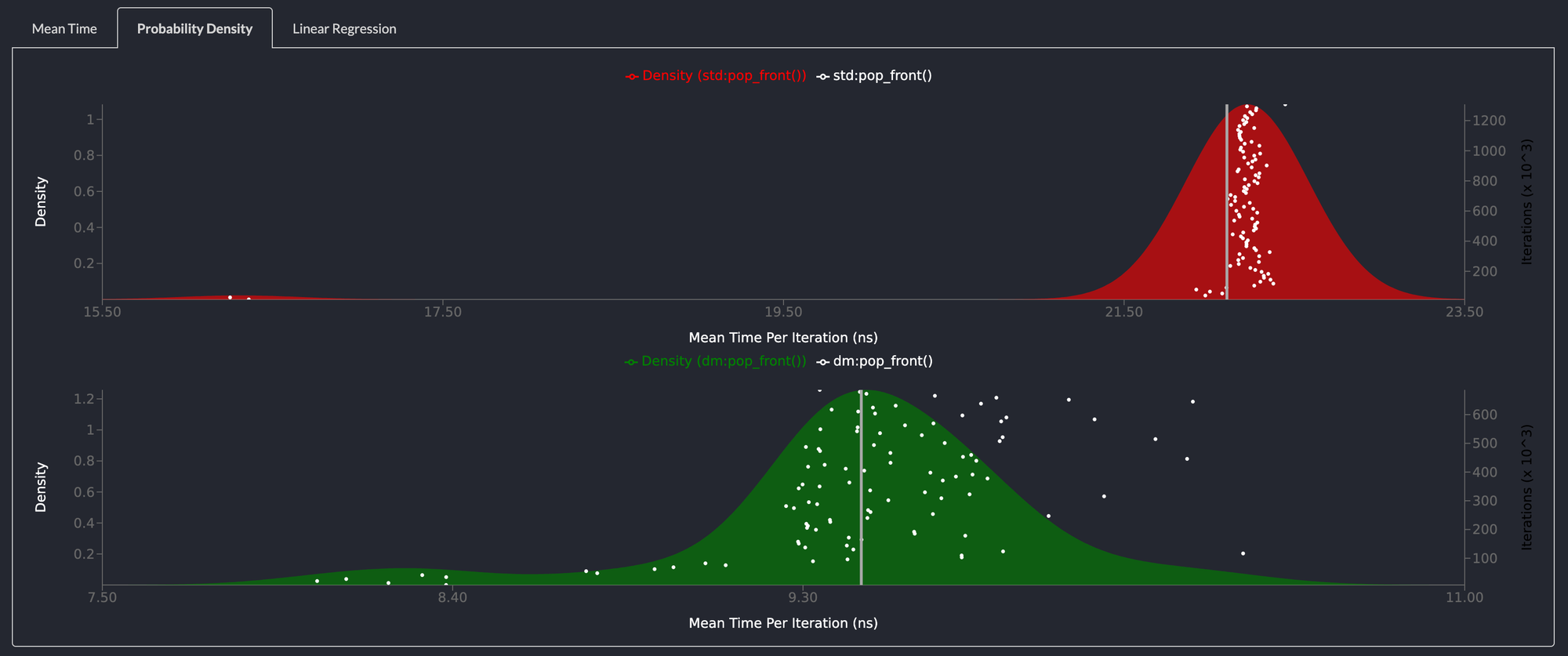 Removing elements from the back of the list also shows the same performance characteristics as pop_front() and for the same reasons.